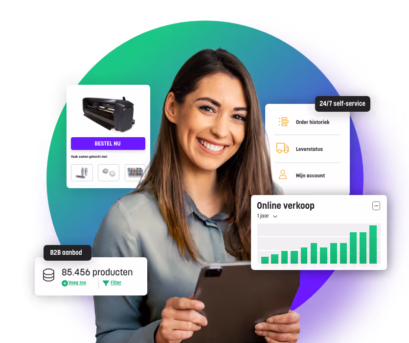 Jouw zakelijke klanten bestellen zelf, 24/7 — aan hun eigen prijs, uit hun eigen catalogus. Geen manuele offertes, geen telefoontjes voor elk order.