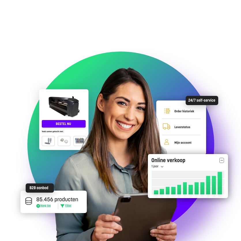 As an SME, you get: e-commerce, customer portal, product management (PIM) and digital asset management (DAM). Supported by AI, of course. See it as a necessary extension of your ERP. Optimized for the European B2B market.